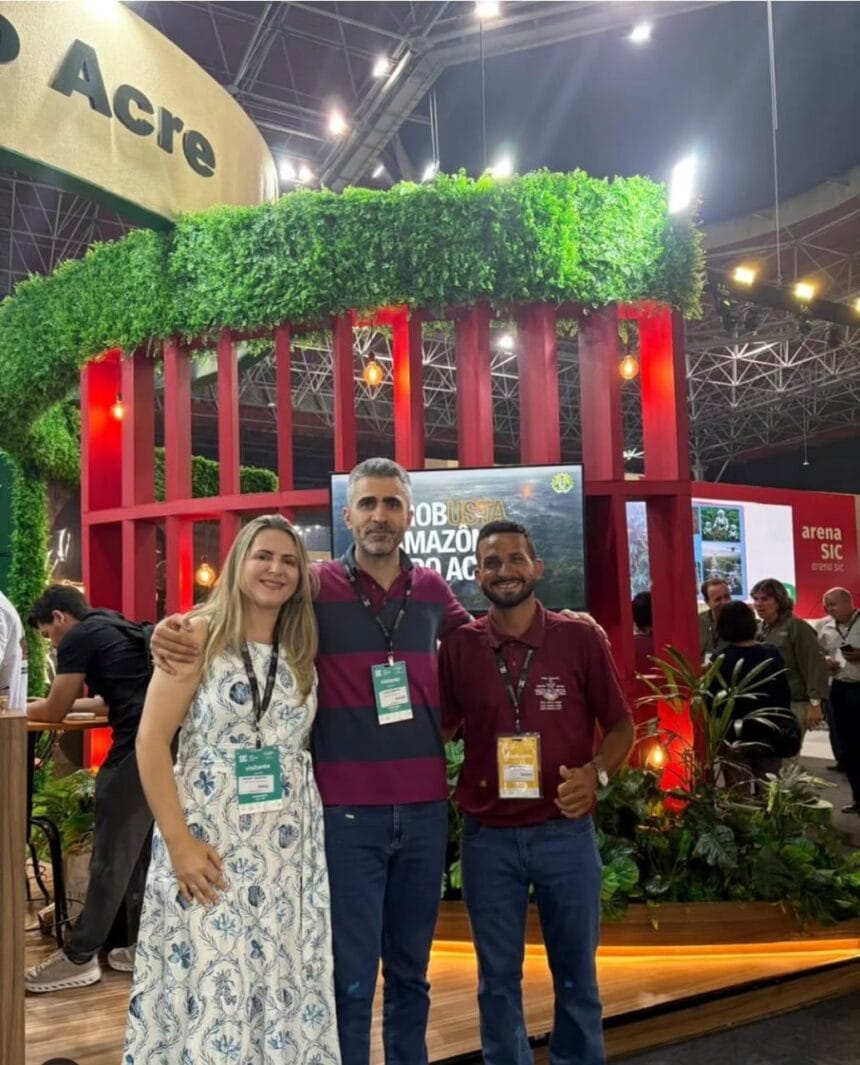 A empresária participou da Semana Internacional do Café, em Belo Horizonte. “Temos que estar perto dos nossos clientes”, explicou. Um dos clientes dela é o produtor Jorge Pereira da Silva Souza, da Reserva Extrativista Chico Mendes. Em rede social, ela lembrou que Souza recebeu a Autorização Direta n. 210/2025, emitida pelo ICMBio, para implantação de 5 hectares de Sistemas Agroflorestais na Colocação Palmeiras II, no Seringal Guanabara, em Brasileia.