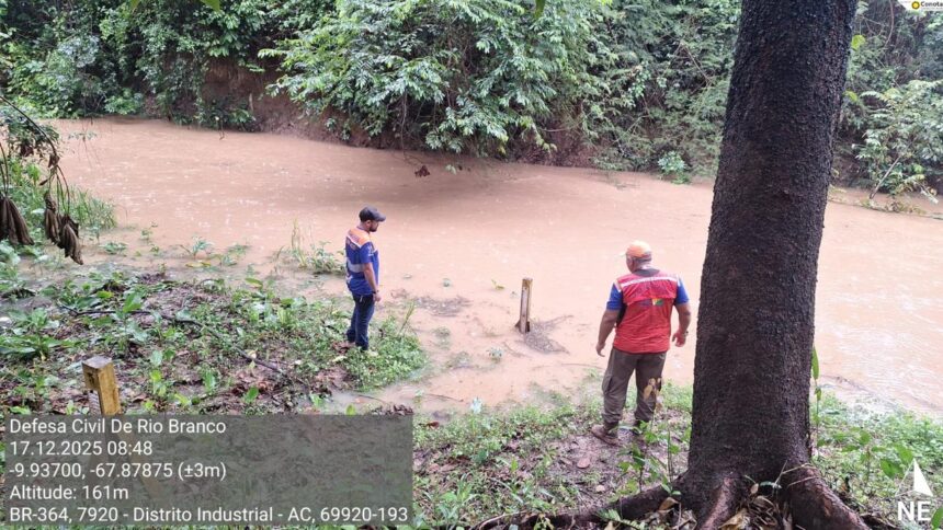 O levantamento do acumulado de chuvas no período de 1º a 17 de dezembro de 2025, até as 10h, mostra que Rio Branco já contabiliza 279 milímetros de chuvas, ultrapassando em cerca de 5% da média esperada para todo o mês, que é de 265 mm. Situação semelhante é observada em Capixaba, onde o acumulado chegou a 251,8 mm, superando em aproximadamente 2% a média histórica de dezembro, estimada em 248 mm.