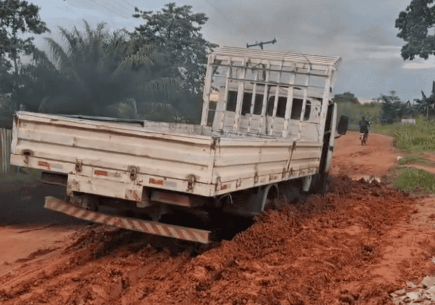 Imagens registradas na última segunda-feira (23) mostram uma camionete e um caminhão atolados em meio à lama, evidenciando as dificuldades enfrentadas por quem depende da via para se deslocar ou escoar produção. Em outro trecho do vídeo, populares aparecem tentando improvisar a drenagem da água acumulada em grandes crateras formadas ao longo do ramal, numa tentativa de amenizar a situação e permitir a passagem de veículos.