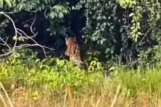 Onça-pintada é vista na Estação Ecológica de Samuel, em Rondônia